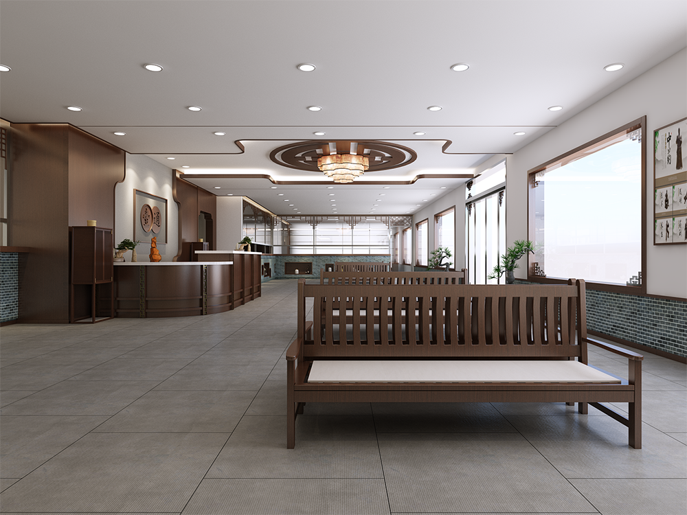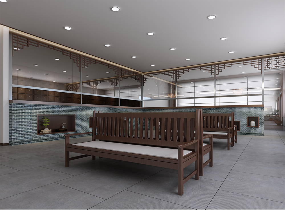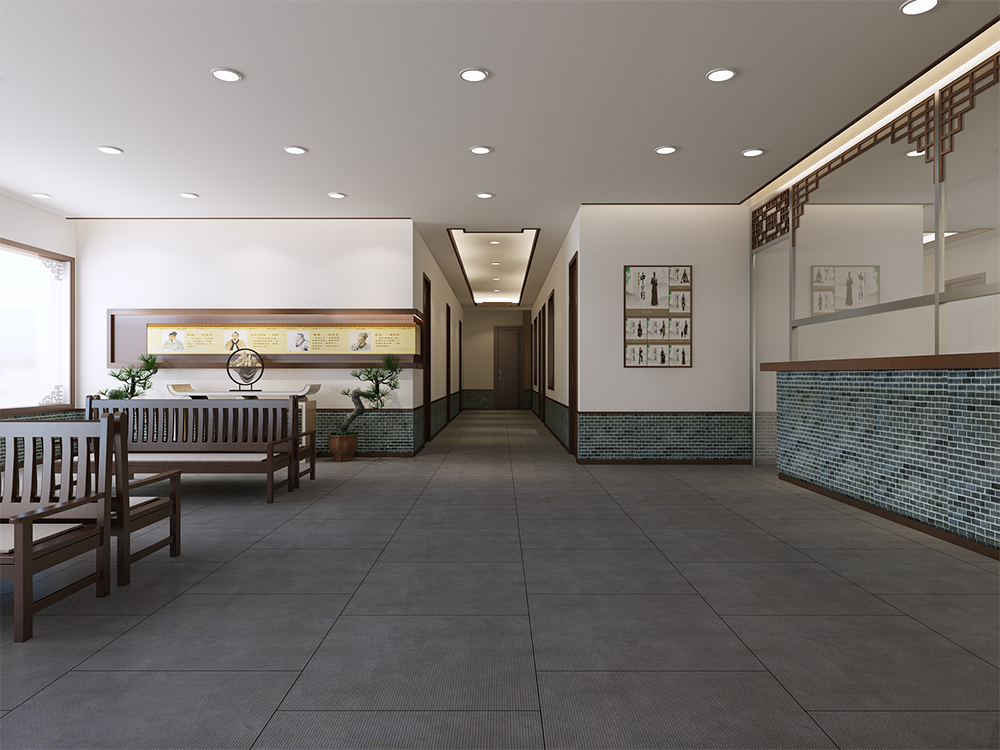 設計理念:中醫診所設計不能只注重外觀的奢華而忽視使用功能,或忽視醫患的心理需求,而應該站在使用者的角度出發,堅持以人為本的原則,力求創造一個人性化、個性化、智能化的診療環境,從而提高就診率和競爭力。
