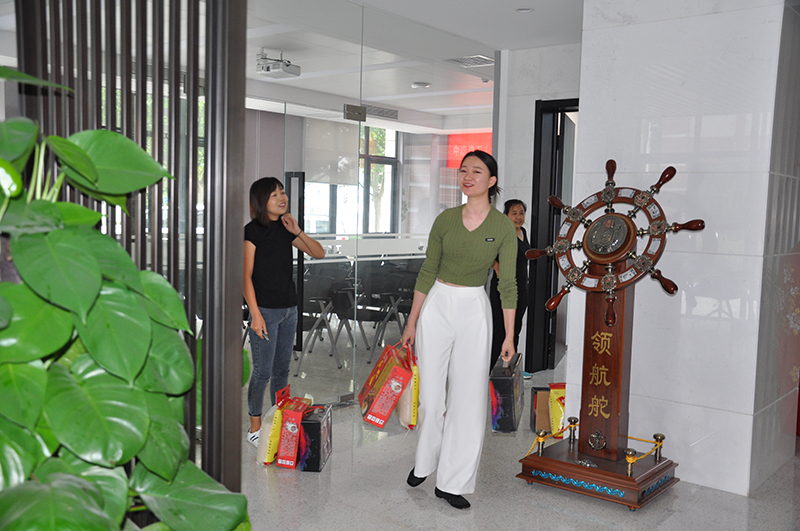 百余份載滿祝福的中秋禮盒陸續被發放到每個員工手中,發放現場異常熱鬧,每一位員工臉上都洋溢著幸福的微笑,紛紛對公司的關懷表示感謝。