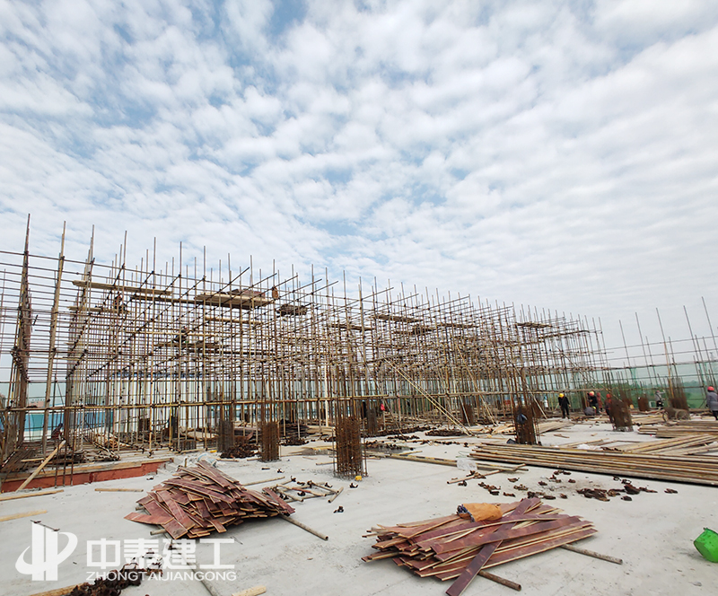 河南項(xiàng)城樂普藥業(yè)股份有限公司原料藥車間項(xiàng)目位于河南省周口市項(xiàng)城市238省道,總建筑面積約為5260.70平方米,占地面積約為2208.09平方米,結(jié)構(gòu)形式為混凝土框架結(jié)構(gòu)組成,主體結(jié)構(gòu)為標(biāo)高為15.60m。 項(xiàng)目于2020年7月25日開工,經(jīng)過前期的不懈努力,在烈日炎炎的環(huán)境下,順利完成場(chǎng)地平整、土方開挖、基礎(chǔ)施工。2020年9、10月間,面對(duì)首層層高7.5米和二層層高超過8米的不利條件下,中泰建工嚴(yán)格按照經(jīng)專家論證通過的高大支模方案進(jìn)行模板施工,認(rèn)真檢查支撐體系。確保達(dá)到施工的安全情況下,順利完成模架支撐體系搭設(shè)。于2020年11月16日順利完成結(jié)構(gòu)封頂。