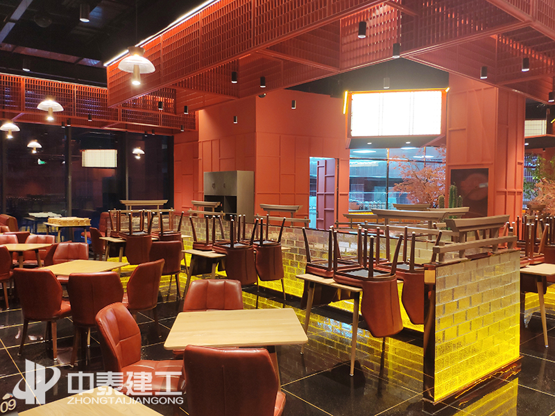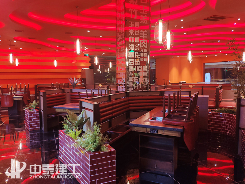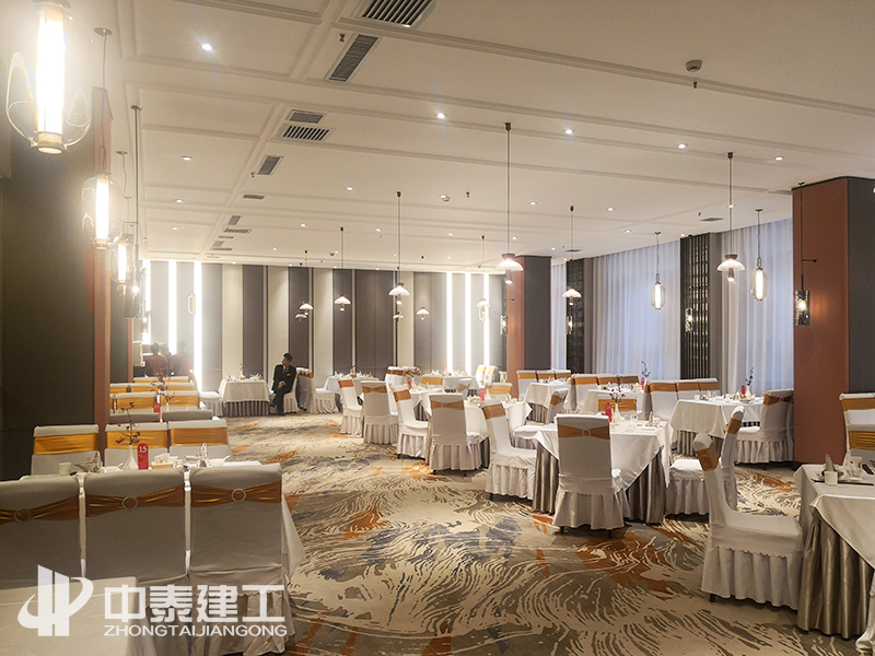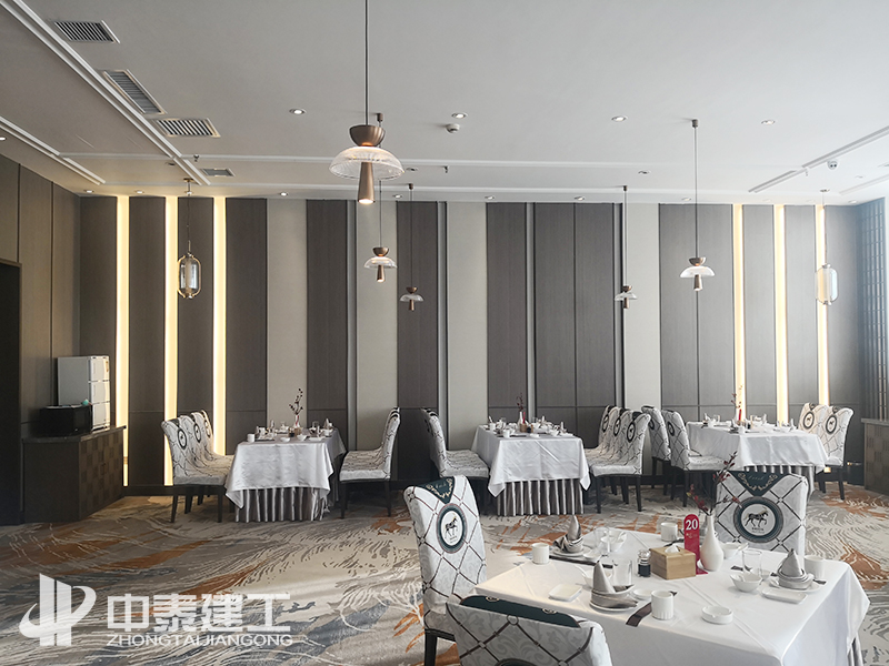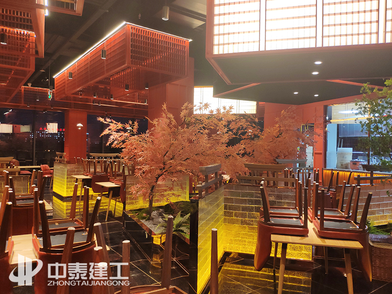 湘菜館花藝景觀及玻璃磚隔斷 設(shè)計(jì)宗旨 中泰建工酒店裝修工程旨在通過獨(dú)特的風(fēng)格吸引到更多的客戶,令就餐、入住客人從視覺上、心理上產(chǎn)生深刻的、賞心悅目的感覺。好的酒店裝修設(shè)計(jì)不僅要滿足使用者視覺上的要求,還需要滿足其在聽、觸、嗅、味及氛圍上的感覺,這些都體現(xiàn)出以人為本的設(shè)計(jì)理念,讓客人能感覺到舒心、溫馨,以及心靈上的滿足。 憑實(shí)力競(jìng)爭(zhēng),靠質(zhì)量取勝,創(chuàng)一流服務(wù); 建一項(xiàng)工程,樹一方口碑,開一片市場(chǎng)。 中泰建工成立于2004年,自成立以來(lái)17年以來(lái),始終堅(jiān)持“高標(biāo)準(zhǔn)、高要求、高效率”,對(duì)施工質(zhì)量、進(jìn)場(chǎng)材料嚴(yán)格把控,對(duì)施工節(jié)點(diǎn)、細(xì)部方案反復(fù)推敲,積極與甲方溝通優(yōu)化施工方案。 經(jīng)過多日的奮戰(zhàn),中泰建工以敬業(yè)精神、專業(yè)服務(wù)確保工程保質(zhì)保量如期完美竣工,高標(biāo)準(zhǔn)的施工質(zhì)量和裝修效果得到客戶的高度贊譽(yù)和充分肯定。