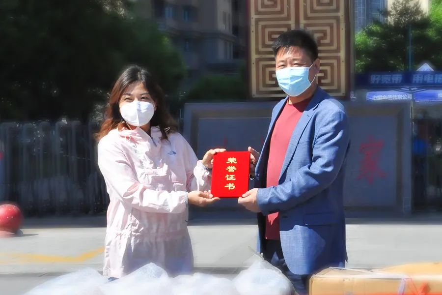 昌平區工商聯常務副主席靳紅以及回龍觀街道各位領導,中泰建工董事長常占軍、黨支部書記趙立國,出席捐贈儀式。