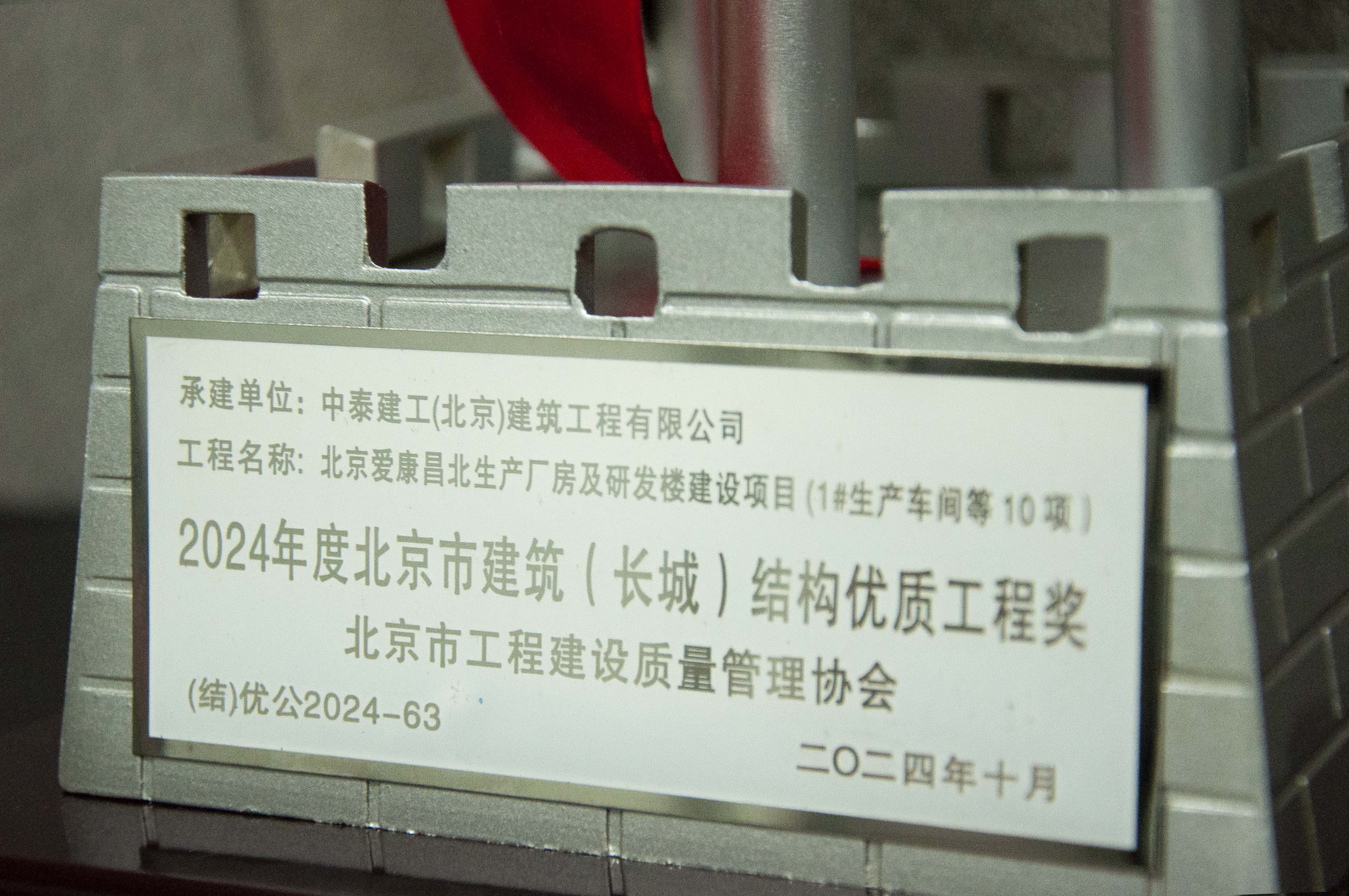 由中泰建工(北京)建筑工程有限公司承建的北京愛康昌北生產廠房及研發樓建設項目,榮獲市級“北京市建筑(長城)結構優質工程獎”。 建筑結構“長城杯”是北京市工程建設質量管理協會在建設工程質量領域設立的最高獎項,依據《北京市建筑(長城)優質工程質量評審管理辦法》和《北京市建筑(長城)結構優質工程質量評價標準》,開展的北京建筑全行業工程質量評比活動,堅持“質量第一、預防為主”的方針,引導和激勵企業加強質量管理,提高工程質量。 北京愛康昌北生產廠房及研發樓建設項目