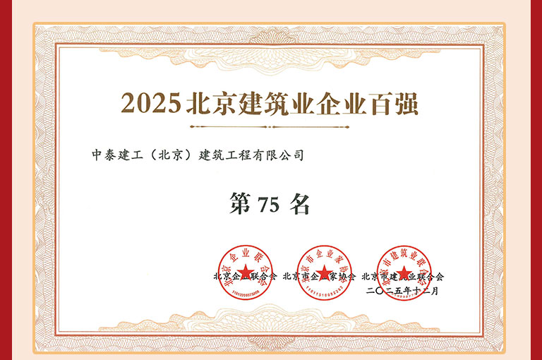喜訊 | 中泰建工榮登2025北京建筑企業(yè)百強(qiáng)及專精特新企業(yè)百強(qiáng)“雙榜”!