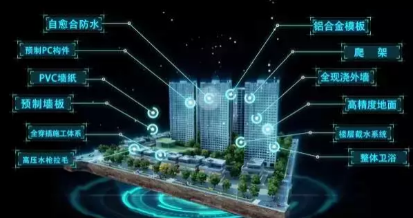 “5432”體系構(gòu)成依托的是五大施工工法、四個(gè)穿插提效、三項(xiàng)前置,最終產(chǎn)生工期以及成本節(jié)約。